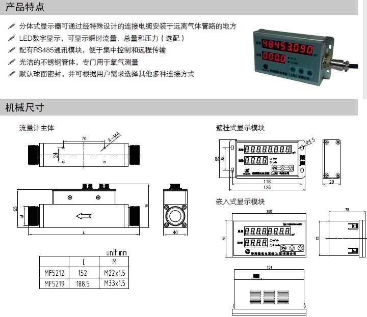 MF5200供(gong)氧系統氧氣流量(liang)計誤差檢測 特點
